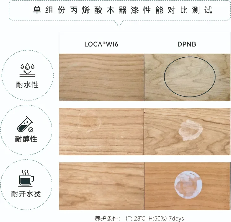 水性木器涂料:提升漆膜通透性與封閉性,優(yōu)化漆耐水白、耐濕熱杯、耐化學(xué)品等應(yīng)用性能,提高雙組分產(chǎn)品的施工時間的寬容度。