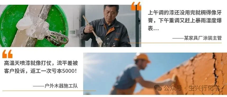 夏至已至,又到了平均氣溫升高、降雨較多的季節,而水性木器漆施工也最容易出現漆膜弊病,如漆膜起皺、層間附著力差、漆膜發白等問題,同時雙組分體系涂料也同時面臨著施工的“時間焦慮”——活化期大幅縮短